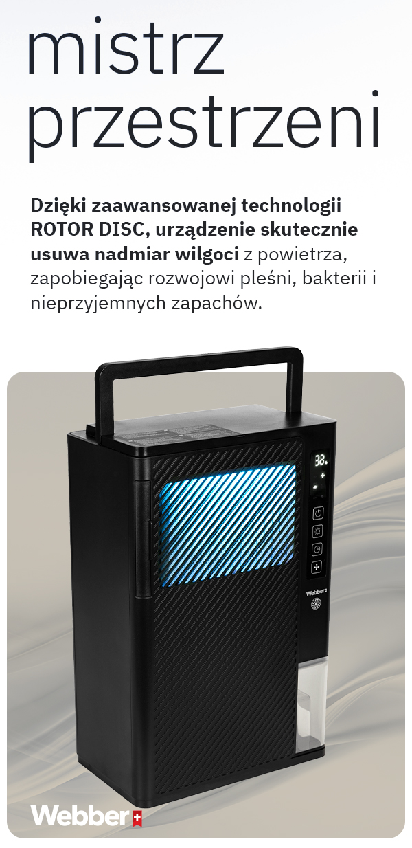 Dzięki zaawansowanej technologii ROTOR DISC, urządzenie skutecznie usuwa nadmiar wilgoci z powietrza, zapobiegając rozwojowi pleśni, bakterii i nieprzyjemnych zapachów.