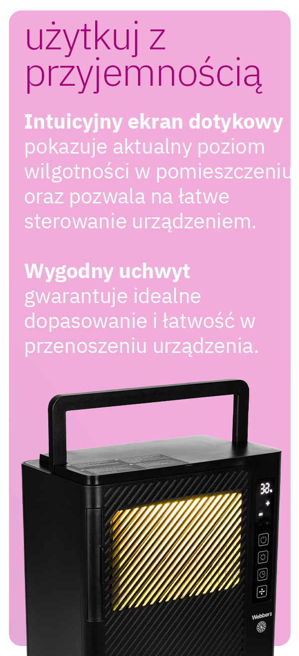 skutecznie usuwa nadmiar wilgoci, chroniąc przed pleśnią i nieprzyjemnym zapachem.